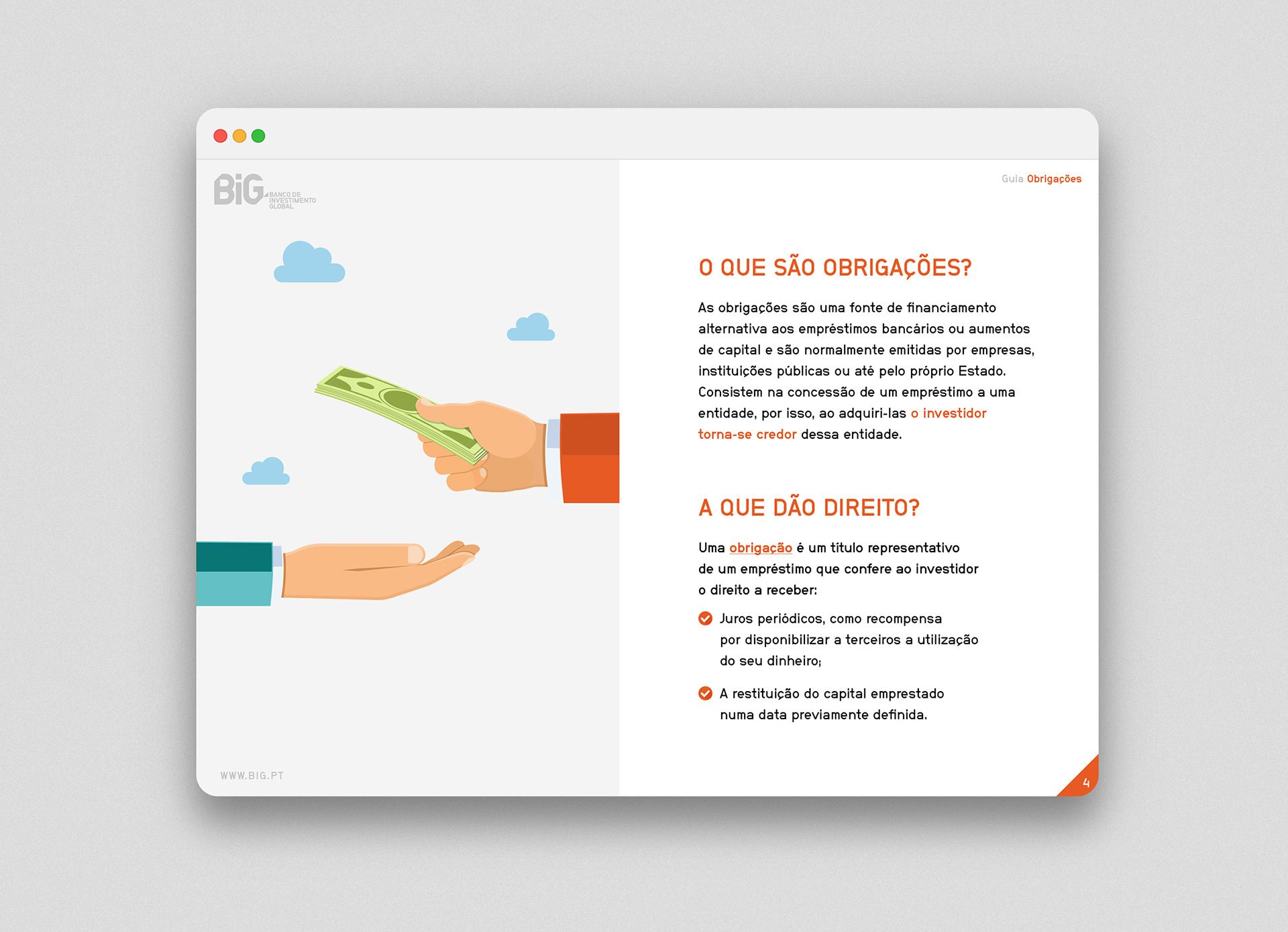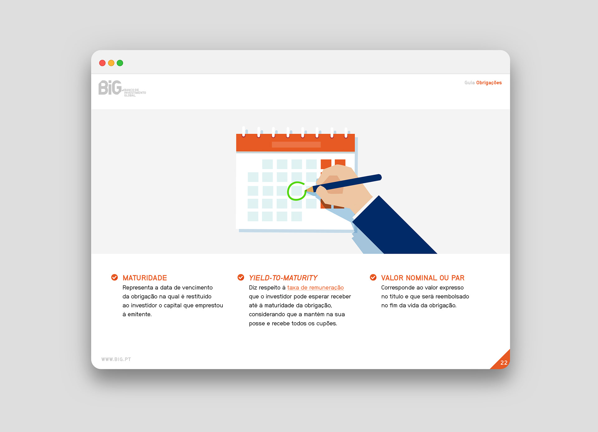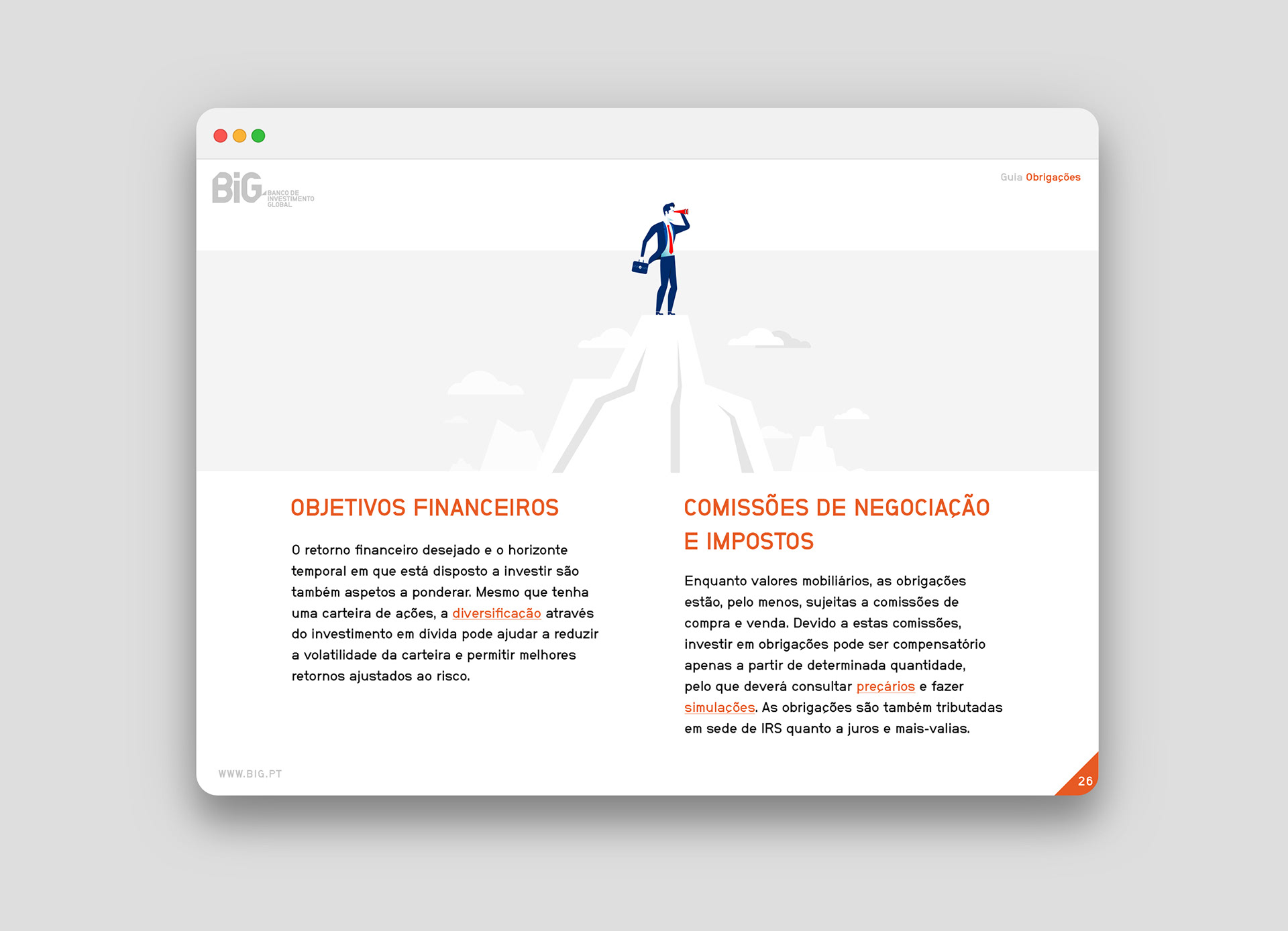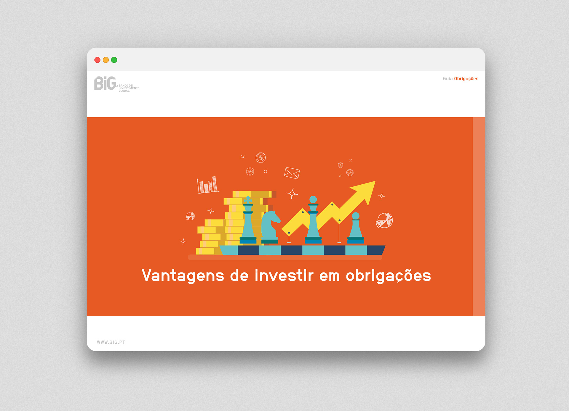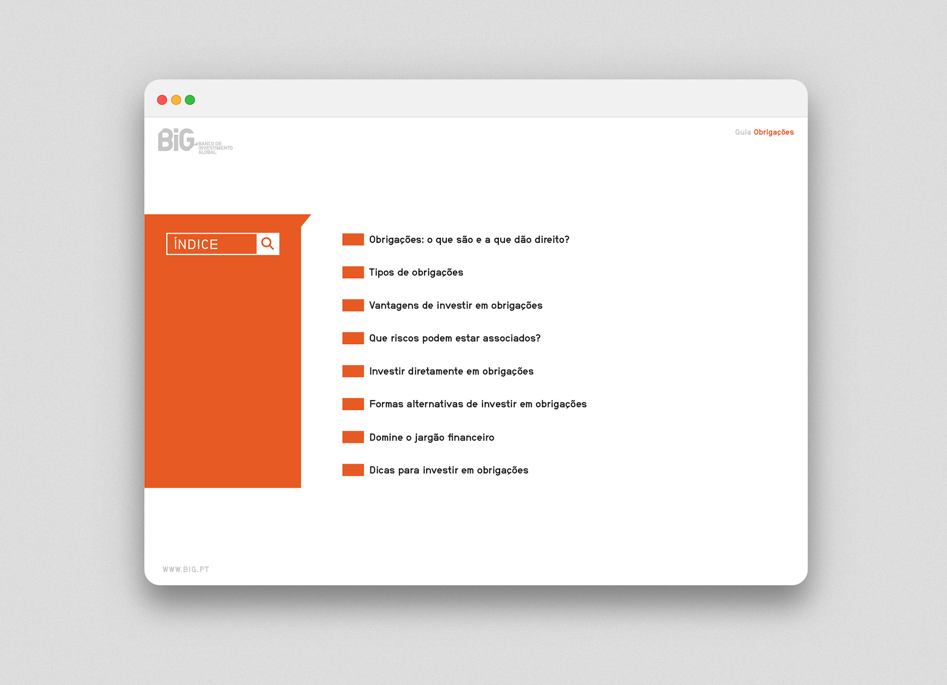 A digital guide designed for BiG — a Portuguese bank — that explains everything a person needs to know about bonds and provides some guidance on how to invest in these types of financial instruments.