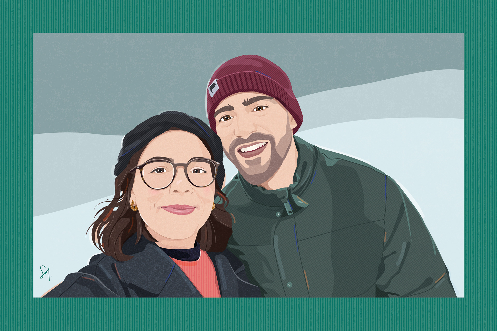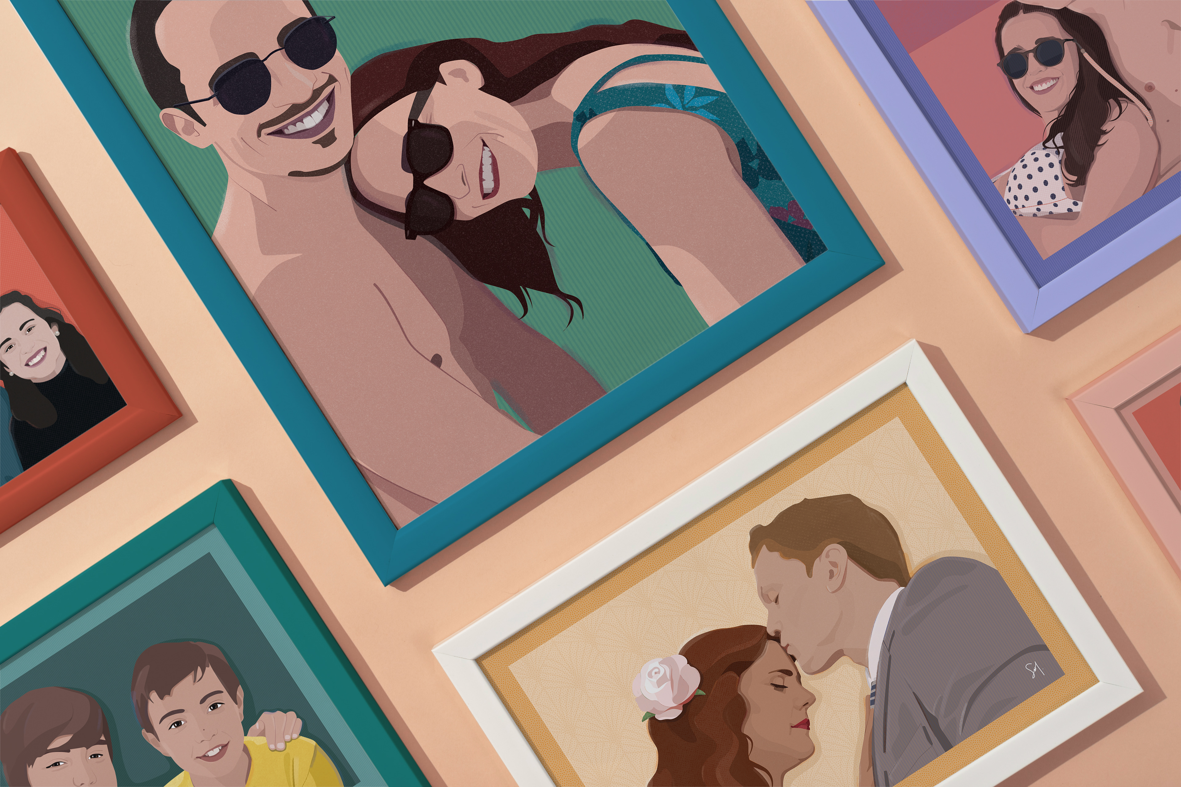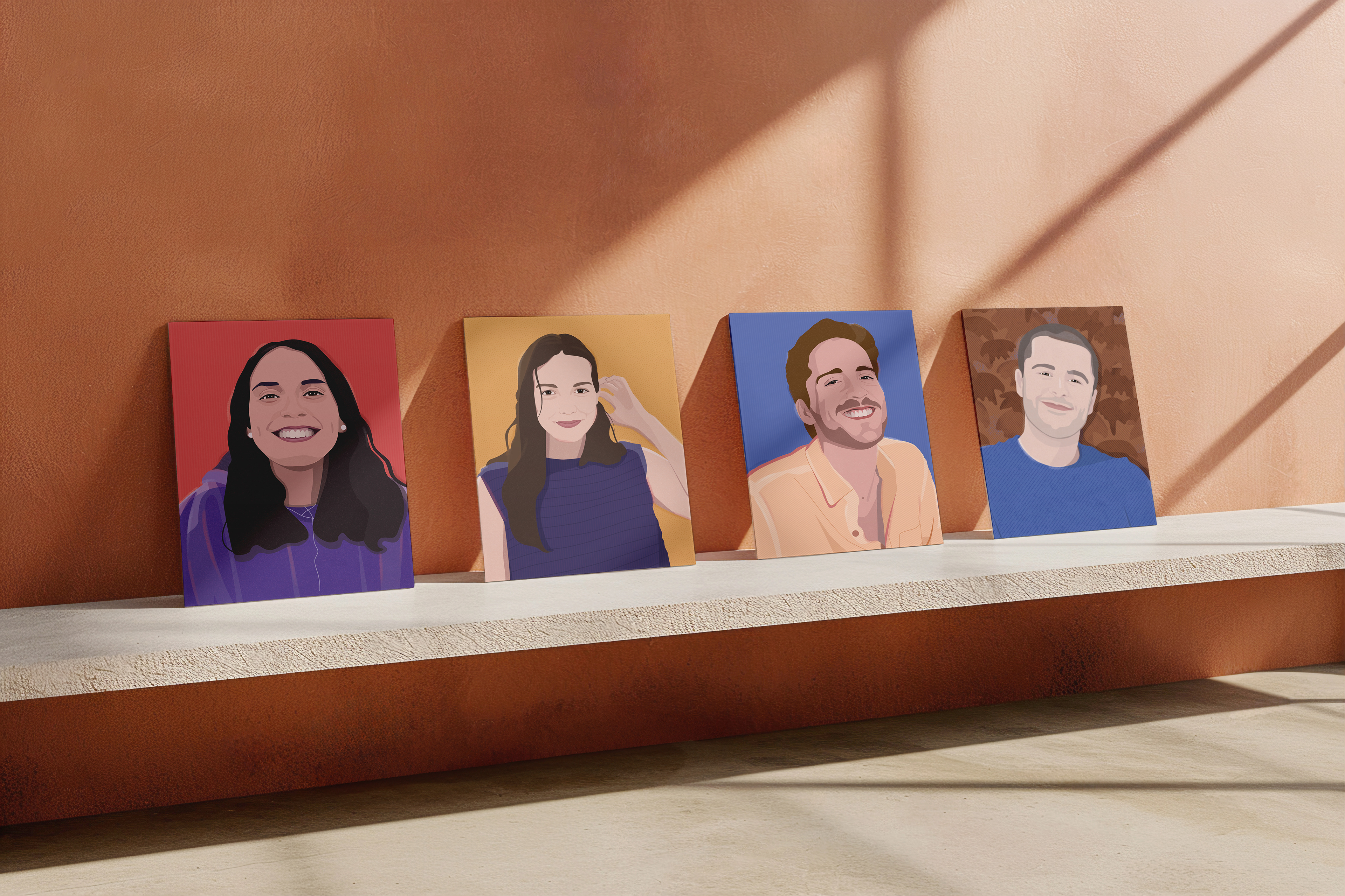 Some commissioned illustrated portraits based on photographs.