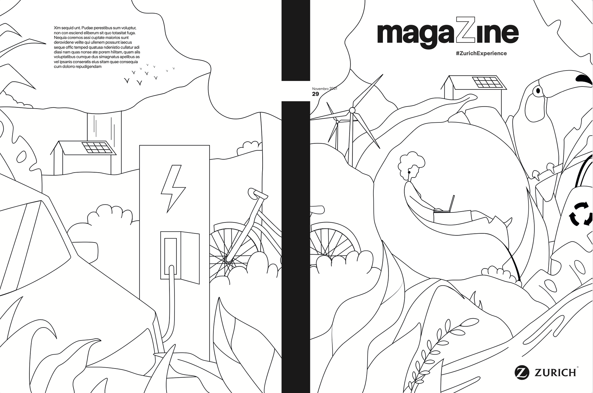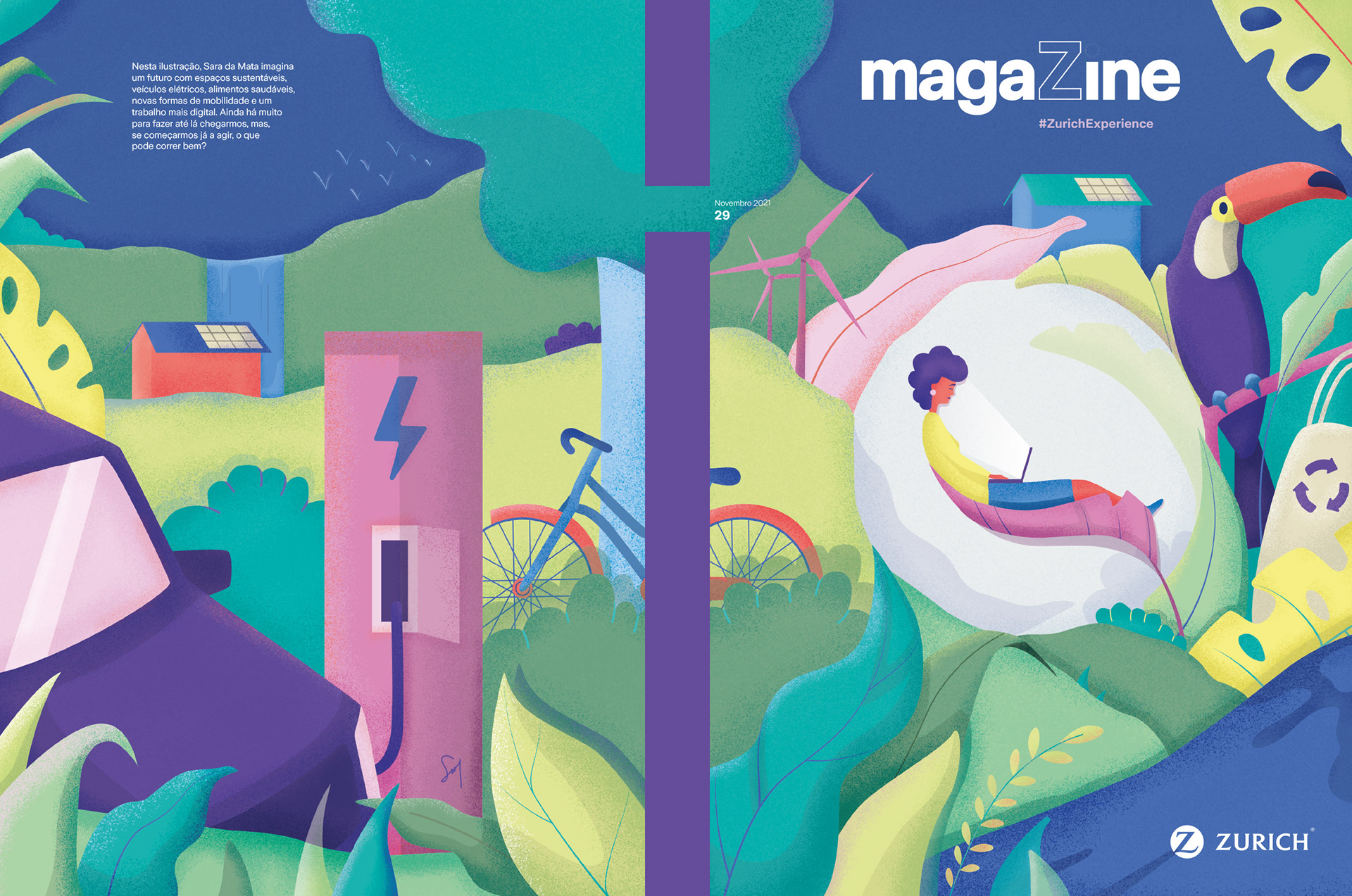 Created some vibrant cover illustrations for seven editions of Zurich Portugal's internal magazine, each capturing the importance of a good work-life balance and the vital role of building a more connected and sustainable world.